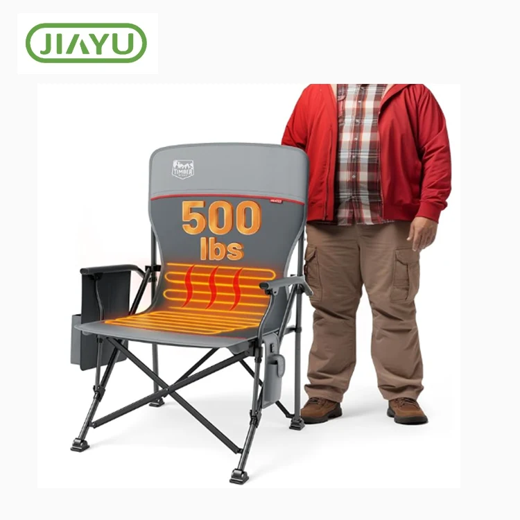 Silla plegable con calefacción personalizada. Mantenga cálido y relajado incluso en bajas temperaturas con zonas de calefacción que transfieren el calor a la parte posterior y las caderas. Ideal para actividades extendidas al aire libre en clima fresco. Zhejiang Jiayu Outdoor Products Co., Ltd., nuestro acampar y pescar hasta eventos deportivos y descansos en el patio trasero, esta silla calentada aporta calidez y comodidad a cualquier entorno al aire libre.