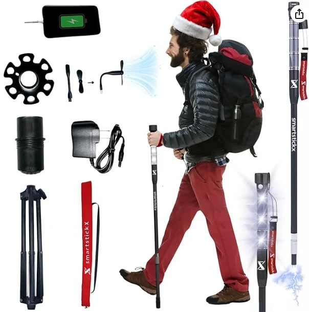 Polo de trekking de luz LED, luz LED que proporciona un impresionante 400 lúmenes de salida de luz más fuerte que la linterna de mano promedio que puede durar hasta 10 horas con una sola carga. Postes de trekking de alta calidad para senderismo, campamento o cualquier otra actividad nocturna y una luz intermitente para cualquier situación de emergencia