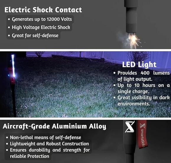 Dos modos disponibles en LED: una luz blanca brillante perfecta para acampar y un flash rojo/azul para situaciones de emergencia, lo que la convierte en una herramienta efectiva para la autodefensa de la autodefensa nocturna.