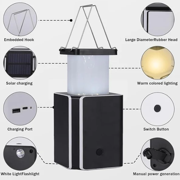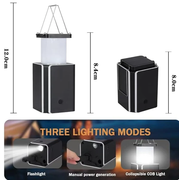 Luz de campamento solar LED, luces de linterna de campamento de emergencia Generación de energía de manivela. Si no tiene un cargador alrededor y no hay sol, este generador de manualidad es perfecto para cargar la luz.