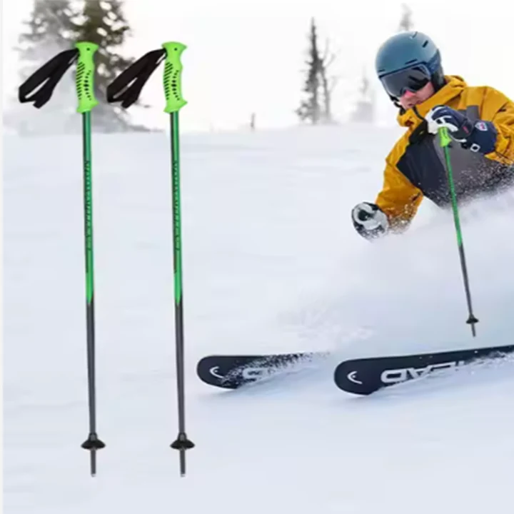Pole de esquí liviano. El eje dural de aluminio y liviano es ligero y duradero. Zhejiang Jiayu Outdoor Products Co., Ltd., componentes seguros y cómodos de agarre bi inyectado ayudan a absorber la vibración transmitida por el poste para obtener un agarre más seguro y todo el día durante todo el día