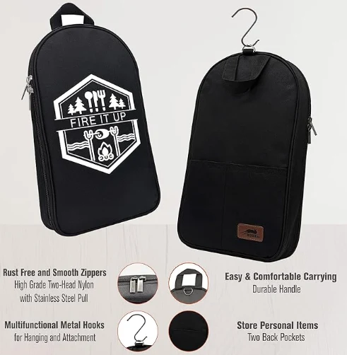Bolsa de almacenamiento de utensilios de cocina para acampar al aire libre. Su satisfacción es nuestra máxima prioridad. Hemos diseñado meticulosamente nuestro equipo y accesorios de campamento para que sean robustos y confiables, eliminando las preocupaciones sobre las herramientas dobladas, rotas o oxidadas. Ya sea que esté colocando, acampando o simplemente disfrutando del aire libre, este conjunto de utensilios para acampar es imprescindible para sus necesidades de cocina al aire libre.