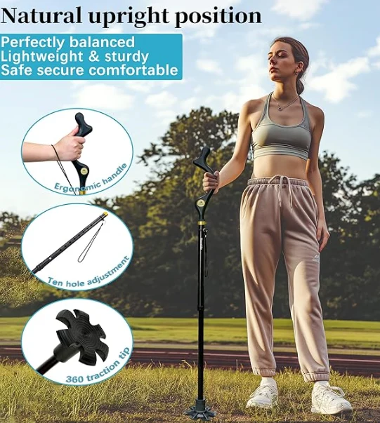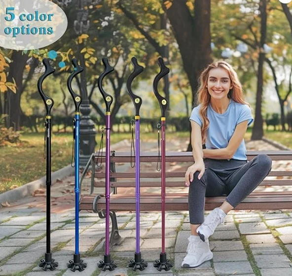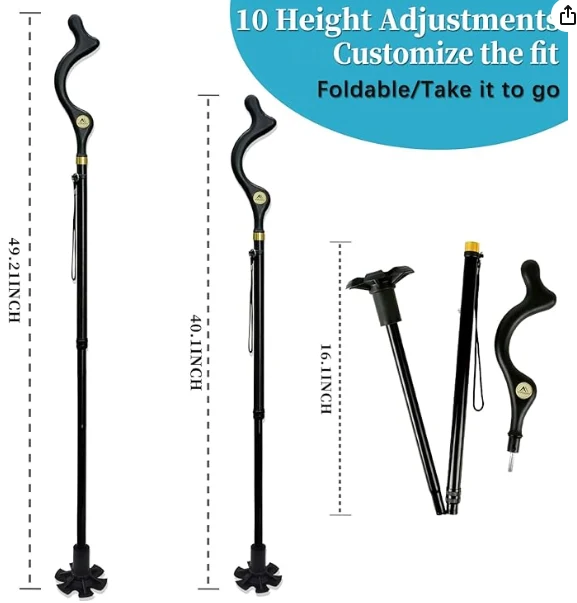 Pole de senderismo de equipo de escalada al aire libre, caña de caña plegable para hombres y mujeres personas mayores para el equilibrio, bastón plegable de pie, altura ajustable anti-deslizamiento de aleación liviana para caminar para caminar para viajar a ayuda de movilidad