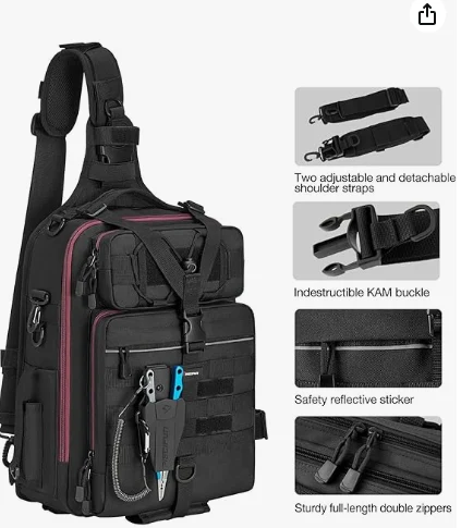 La bolsa de pesca al aire libre, la bolsa de aparejo de pesca hecha con equipos de alta gama, nuestras telas de nylon de alta densidad 1000D son resistentes al agua y resistentes a la abrasión. Nuestras hebillas Kam y SBS Zips son indestructibles y resistentes