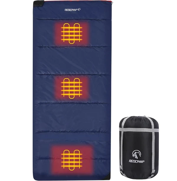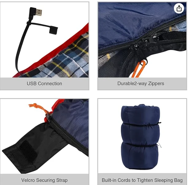 El saco de dormir impermeable con calefacción portátil, al presionar un botón, esto le facilita ajustar la temperatura de acuerdo con sus necesidades, lo que trae calor y comodidad durante toda la noche.