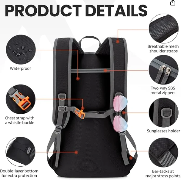 Mochila plegable de senderismo impermeable, clip de cofre con una hebilla de silbato funciona perfectamente para distribuir el peso del paquete y mantenerlo estable y centrado. Debido tener para deportes, senderismo y campingzhejiang Jiayu Outdoor Products Co., Ltd. Mejora de la visibilidad durante las actividades nocturnas al aire libre. Este diseño asegura que permanezca visible para los demás, aumentando la seguridad cuando está fuera después del anochecer
